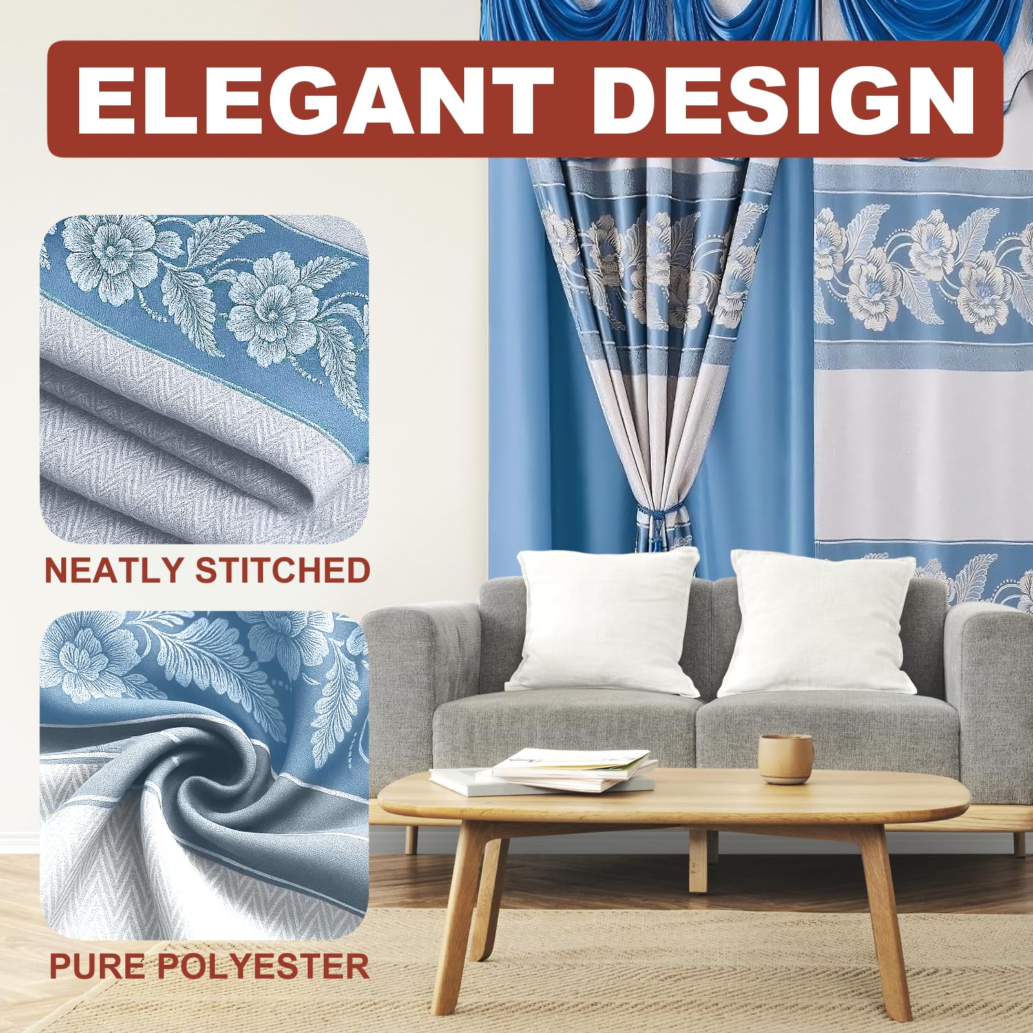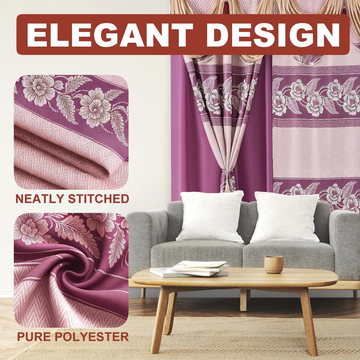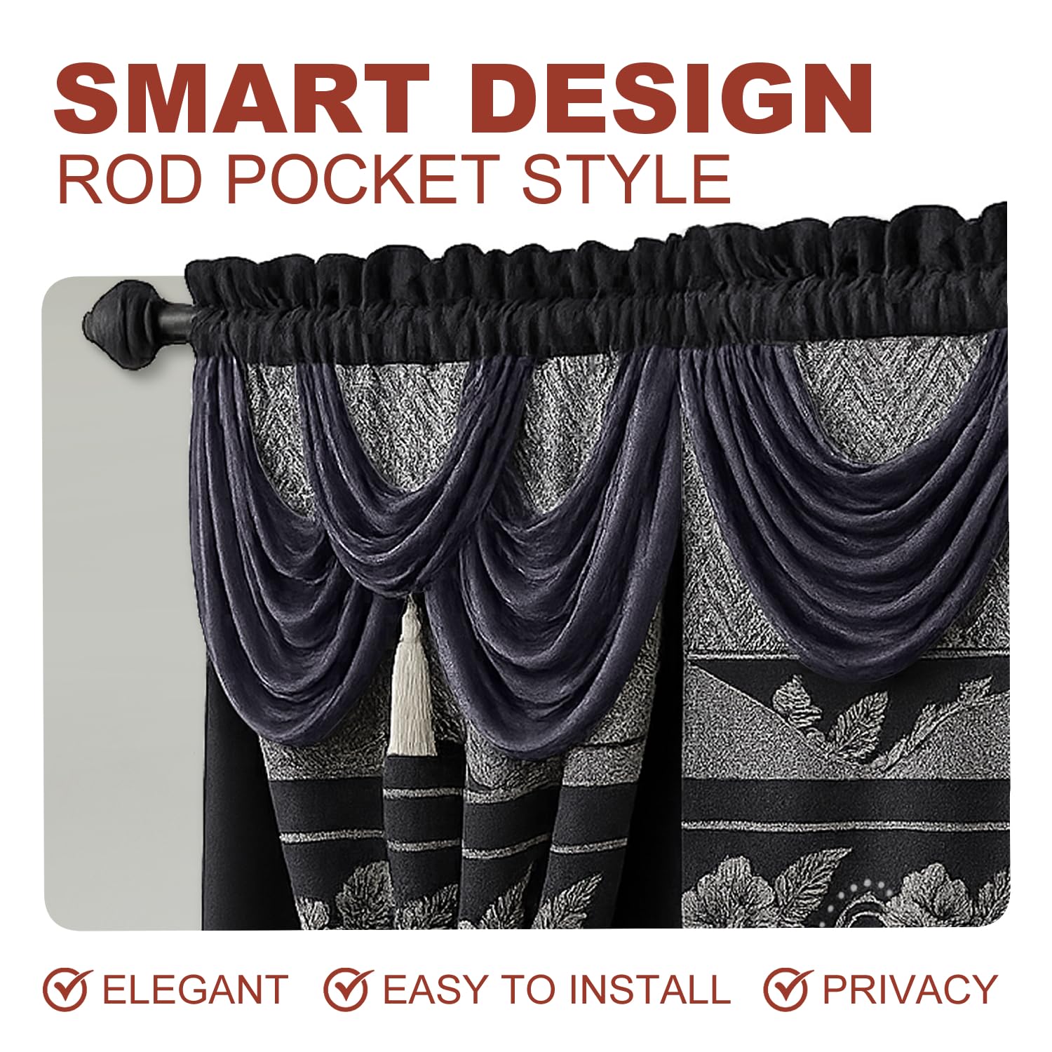 - TIMELESS FLORAL JACQUARD PATTERN: Brings an elegant touch to your windows with these fancy living room curtains, featuring a traditional floral jacquard pattern. The curtain with valance design complements both classic and contemporary decor, making it a great addition to any room.