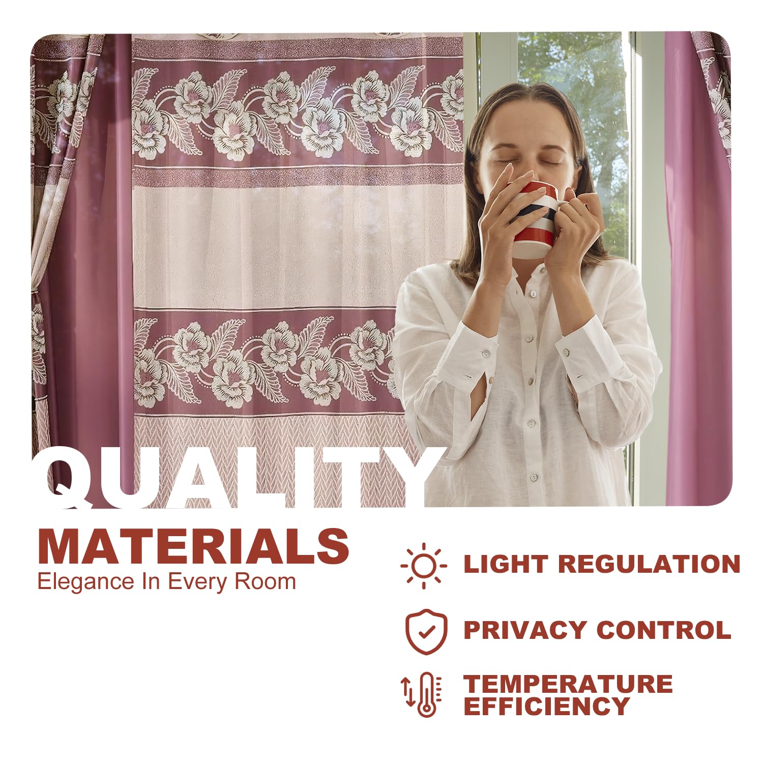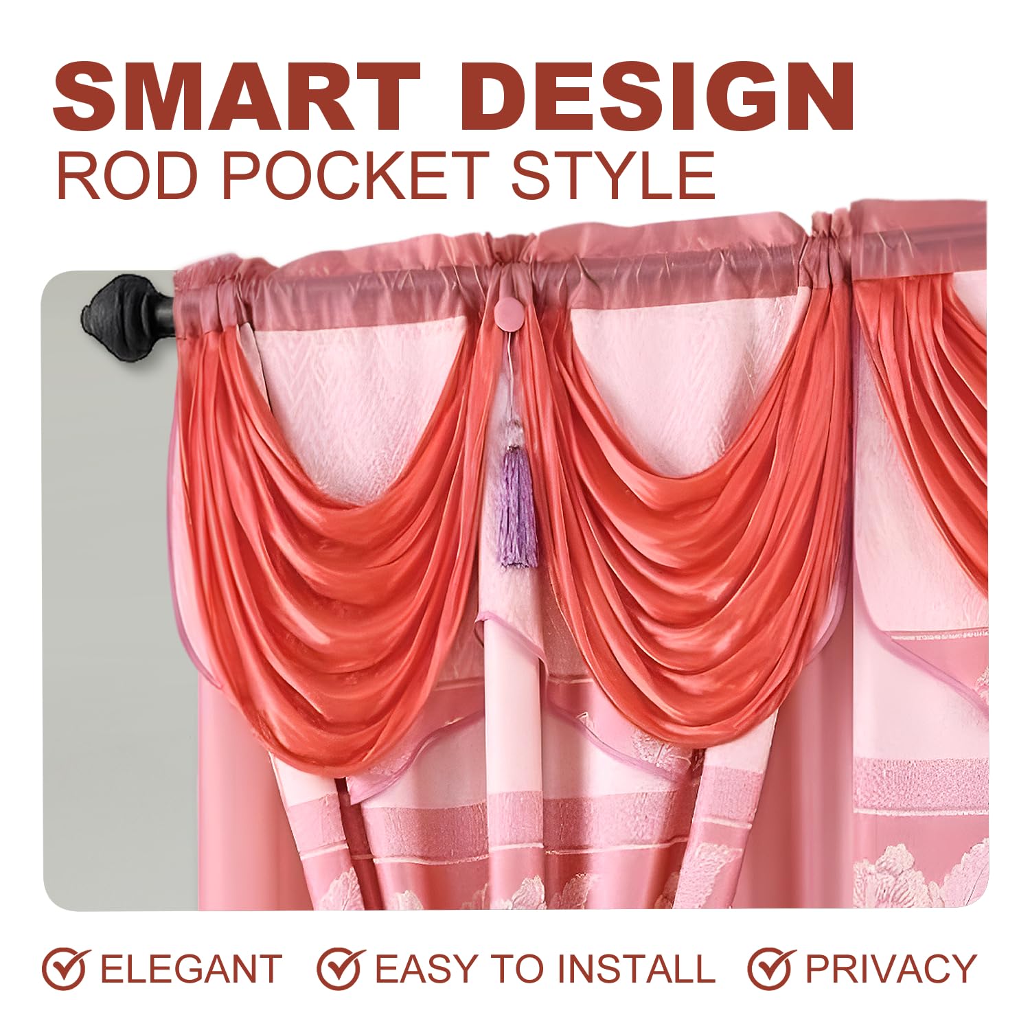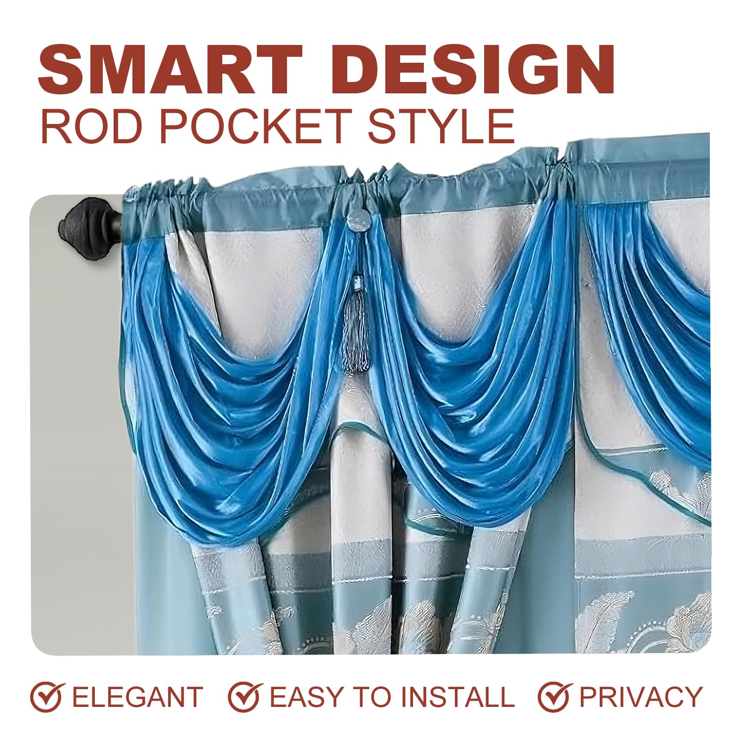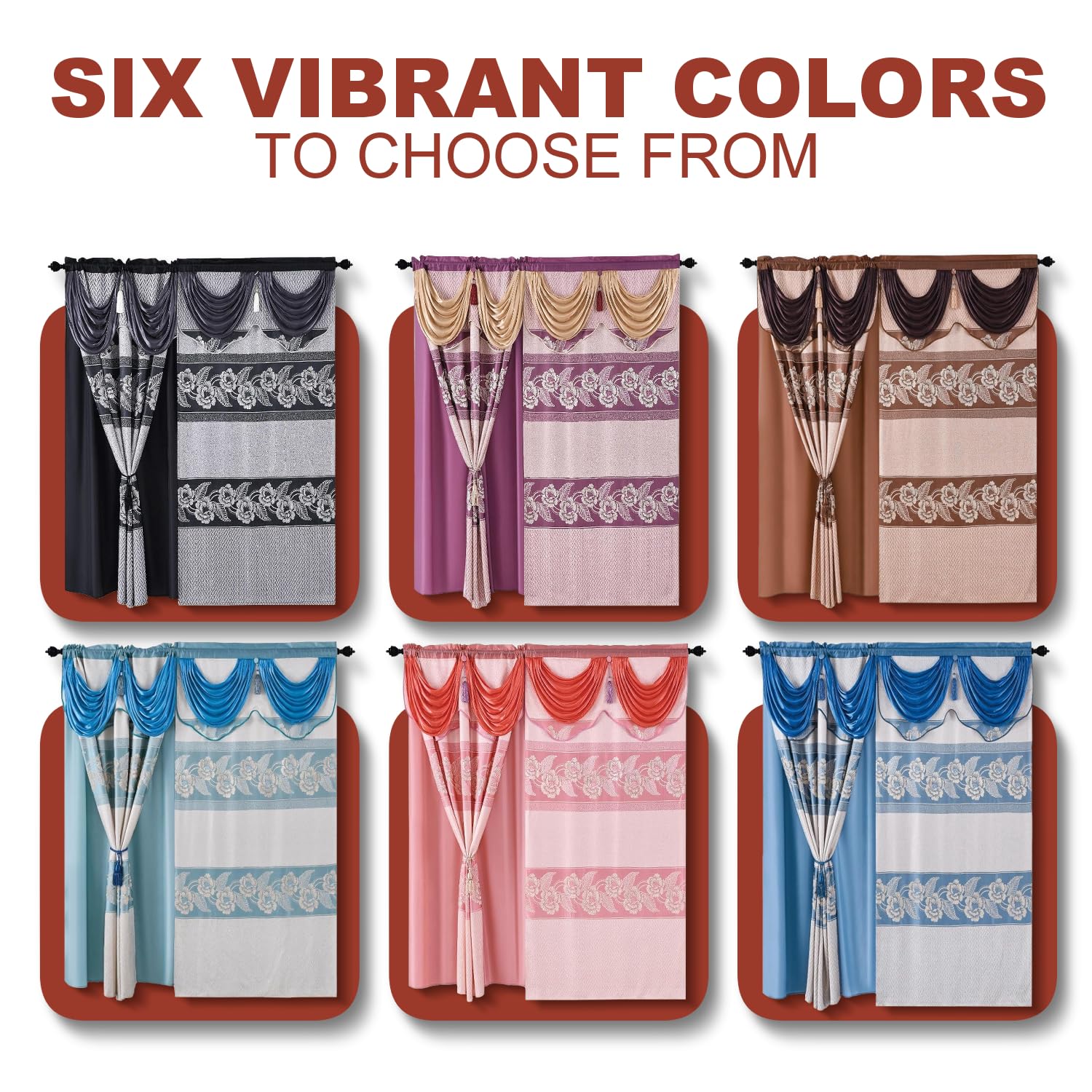 - TIMELESS FLORAL JACQUARD PATTERN: Brings an elegant touch to your windows with these fancy living room curtains, featuring a traditional floral jacquard pattern. The curtain with valance design complements both classic and contemporary decor, making it a great addition to any room.
