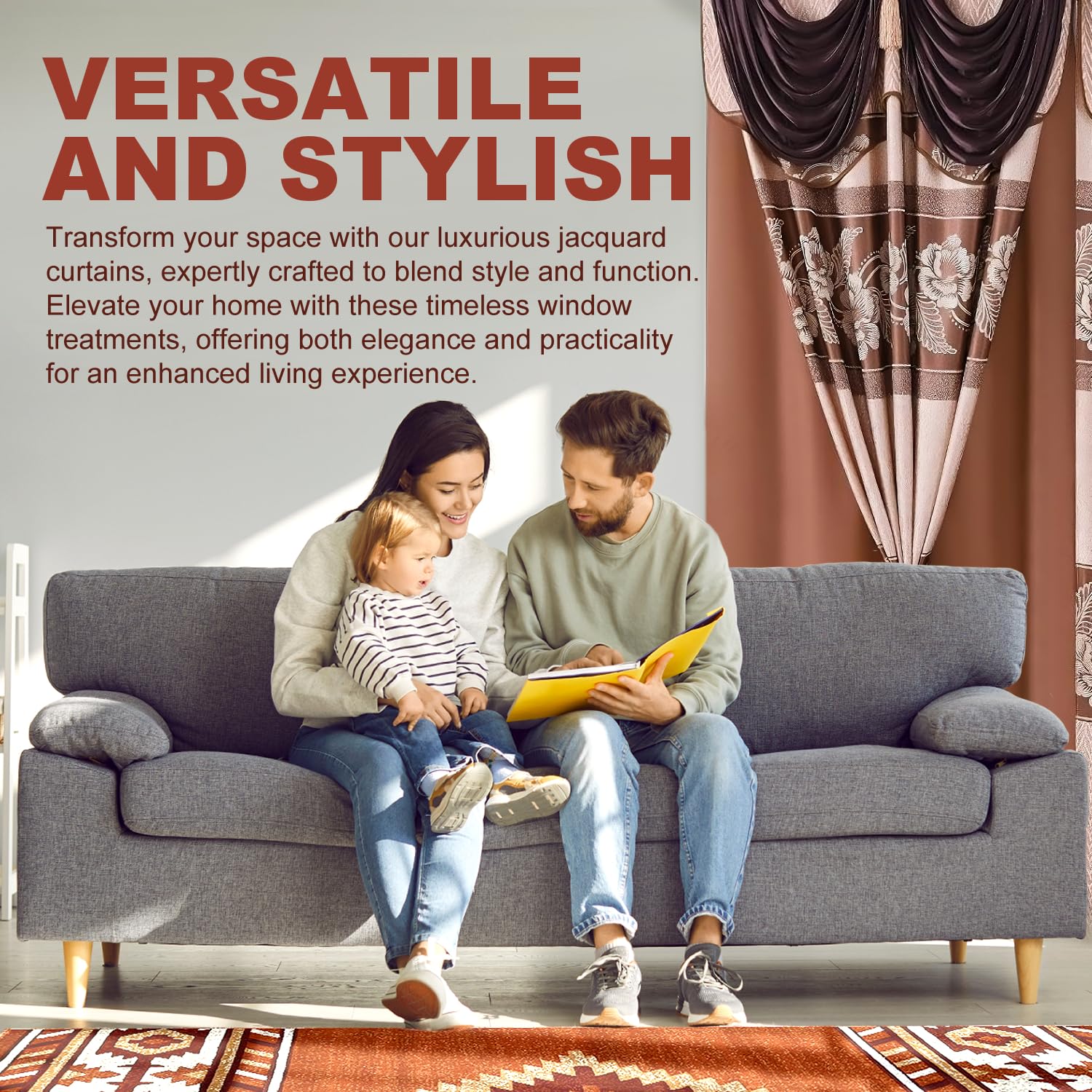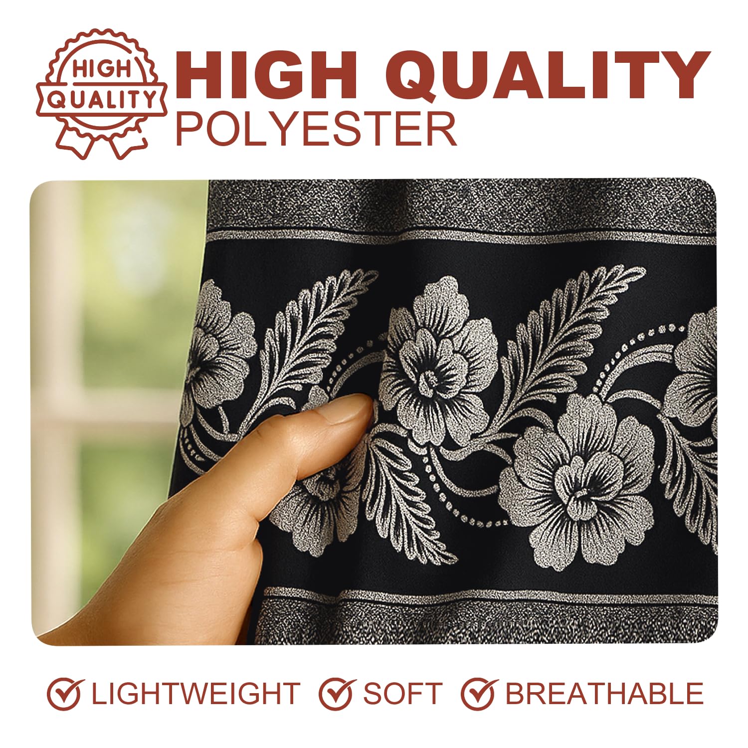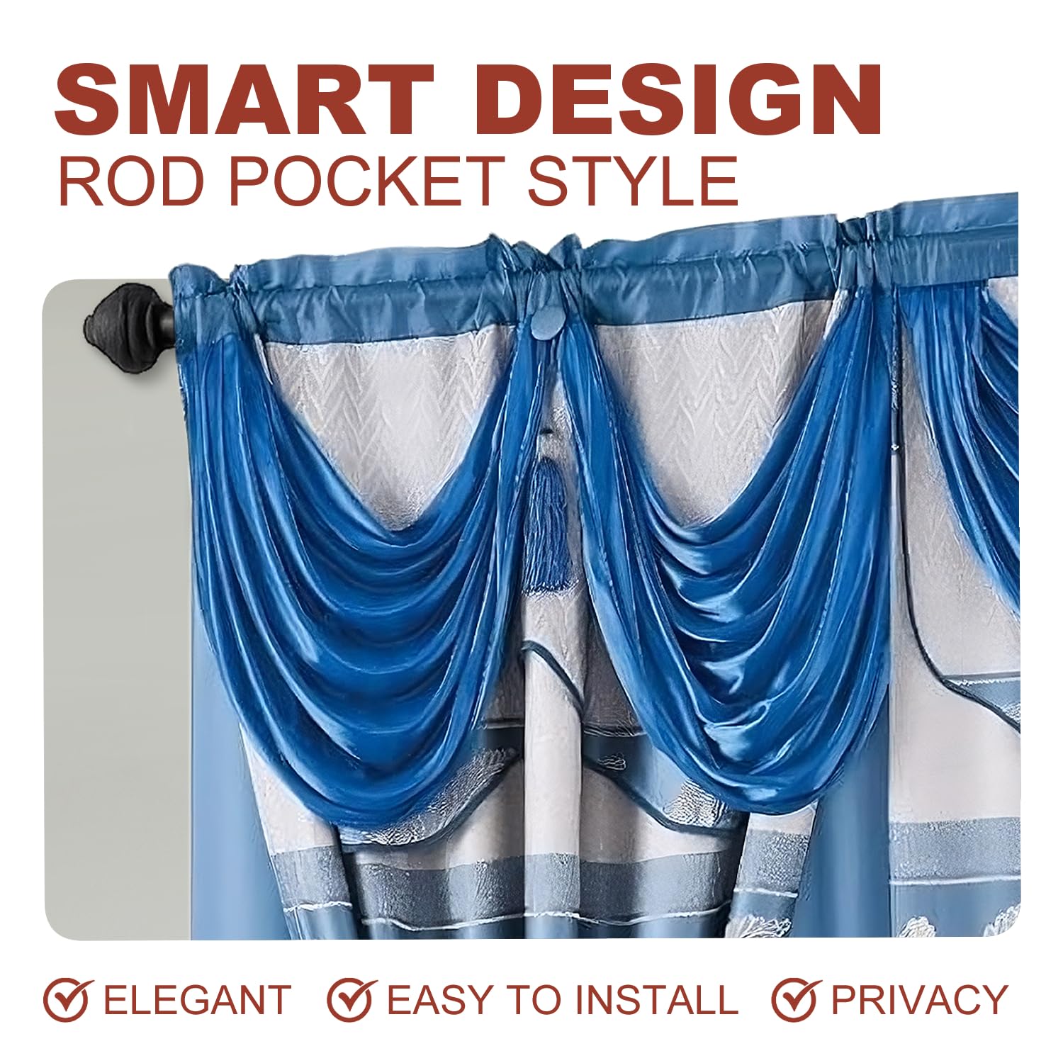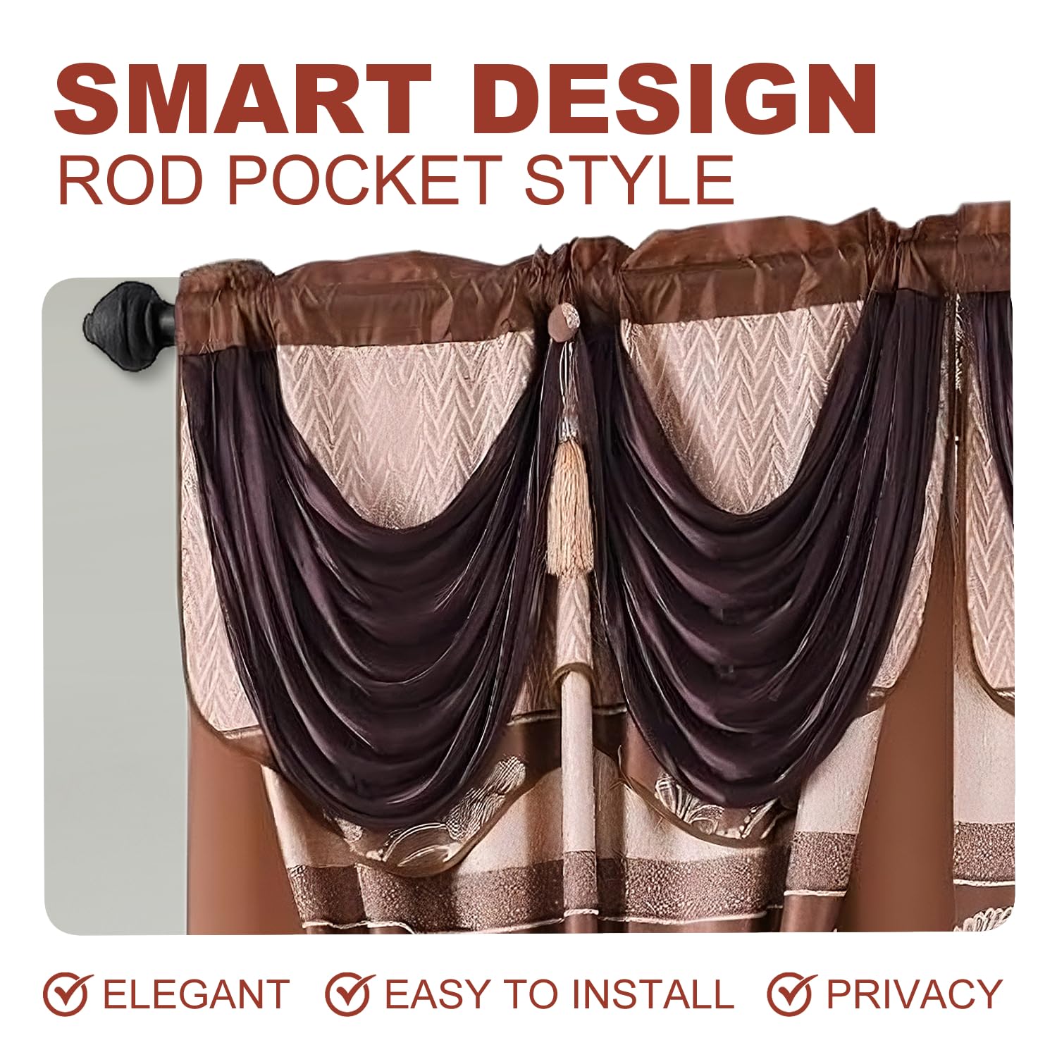 - ELEGANT DESIGN FOR ANY ROOM: Elevate the look of your home with our Jacquard Window Curtain Set. These jacquard curtains with valance are ideal for living room curtains, bedroom curtains, or even kitchen and dining room windows. The intricate jacquard design adds sophistication and charm to any space.