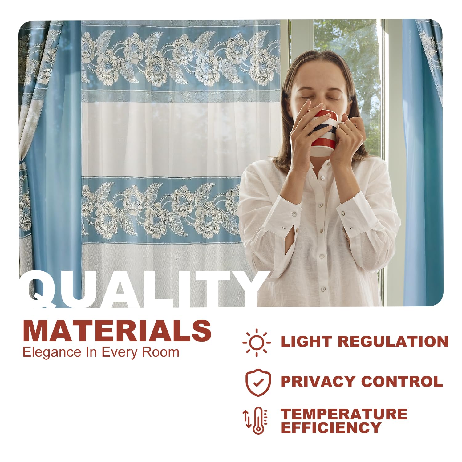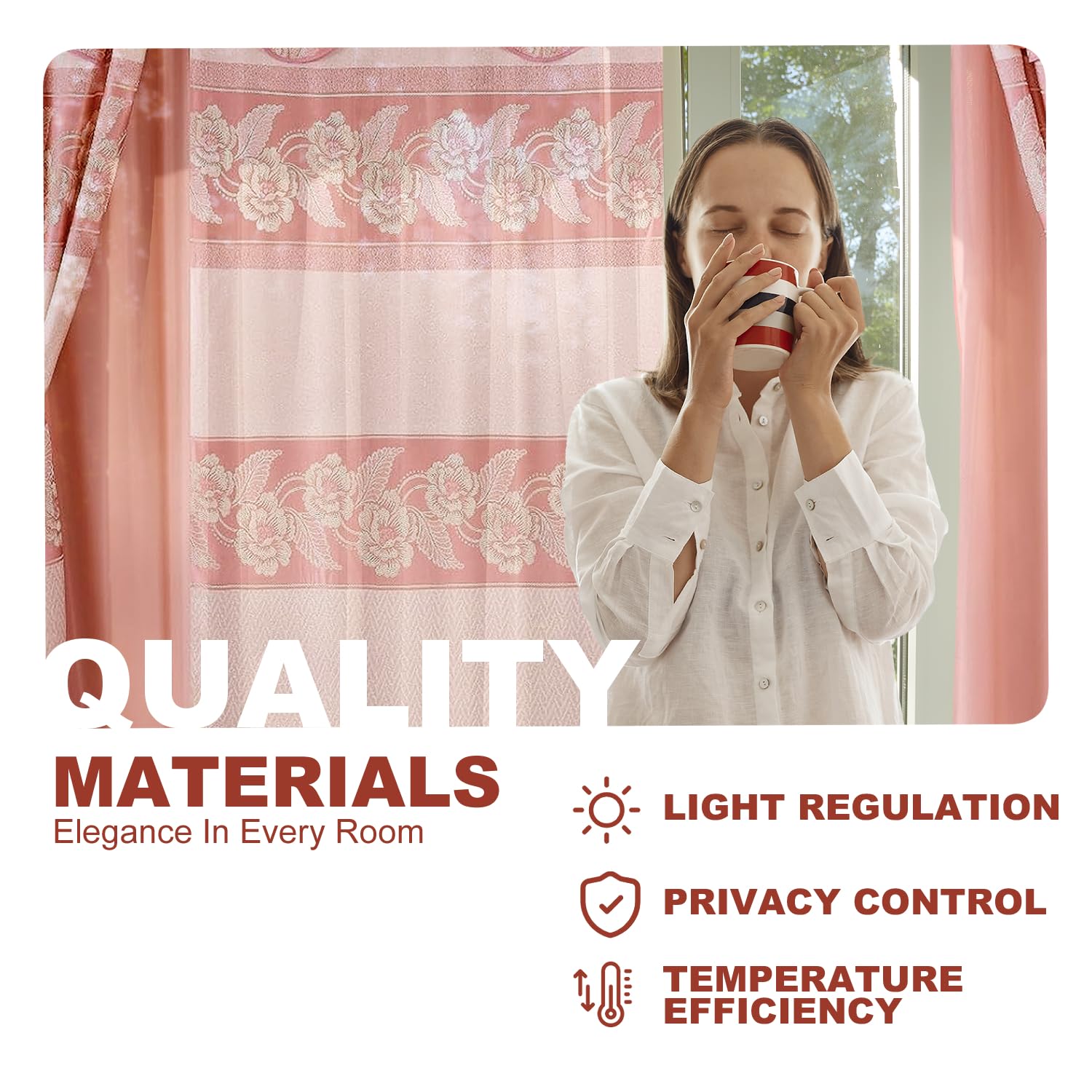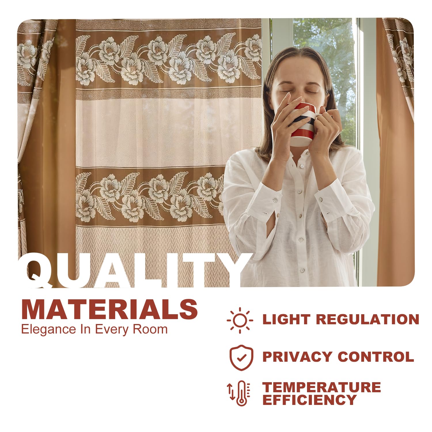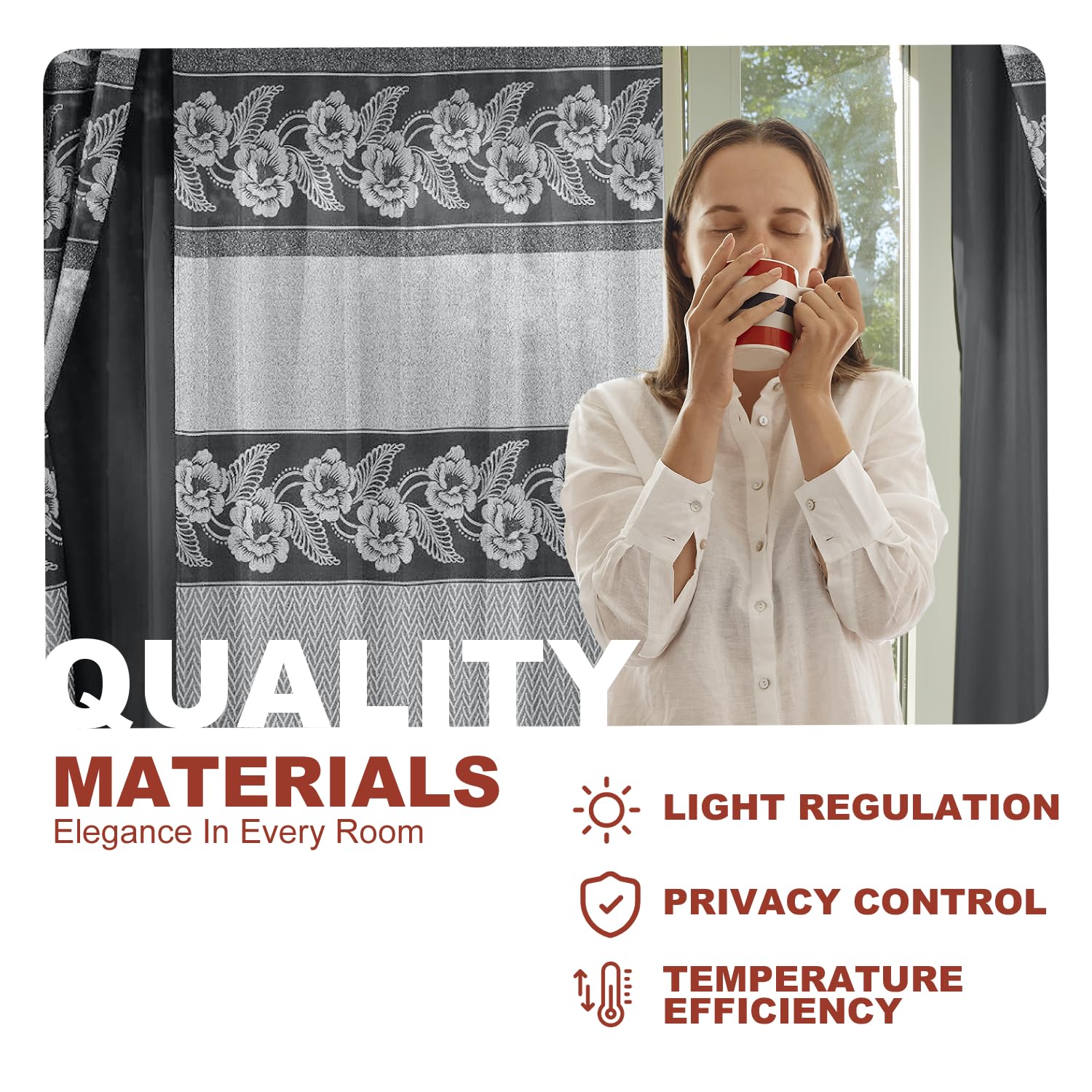- ELEGANT DESIGN FOR ANY ROOM: Elevate the look of your home with our Jacquard Window Curtain Set. These jacquard curtains with valance are ideal for living room curtains, bedroom curtains, or even kitchen and dining room windows. The intricate jacquard design adds sophistication and charm to any space.