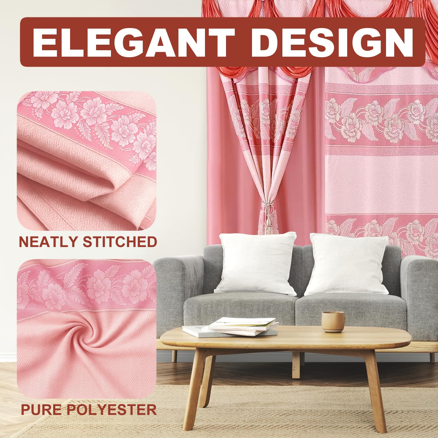 - COMPLETE CURTAIN SET: This set includes everything you need: two panels, a built-in valance, sheer fabric for light diffusion, and matching tie backs, offering a stylish and functional solution for your living room windows. Ideal for enhancing any space with elegant jacquard curtains.