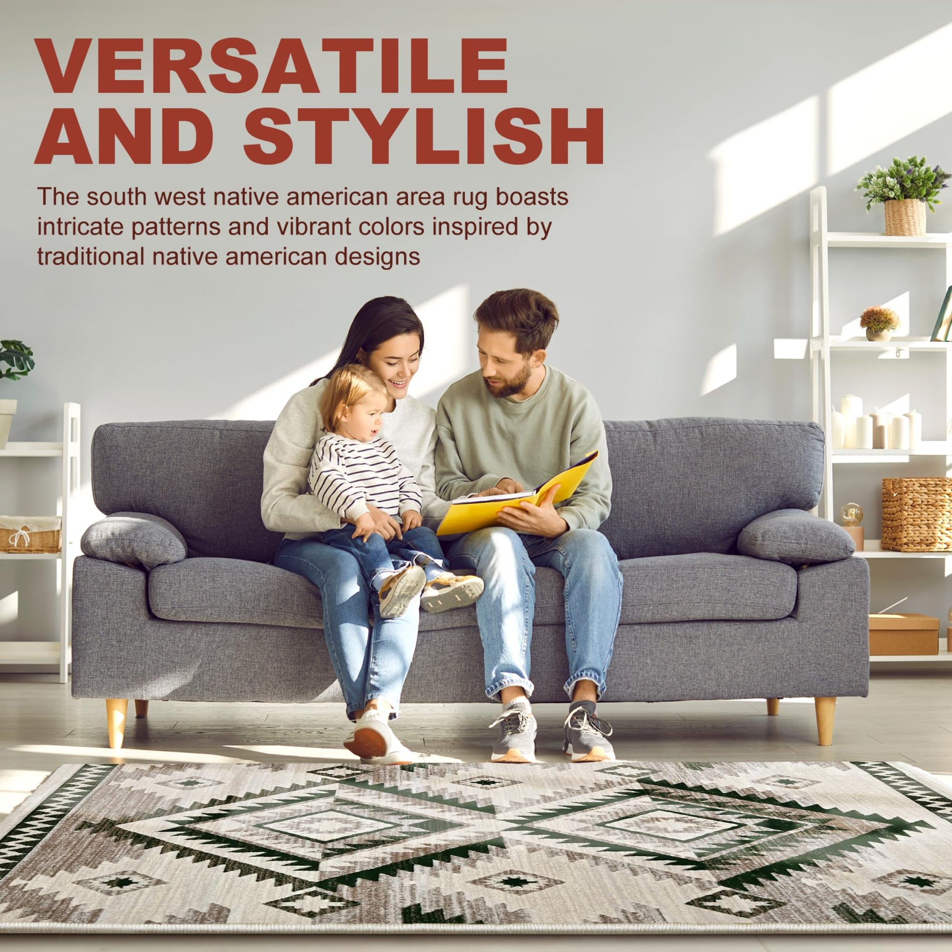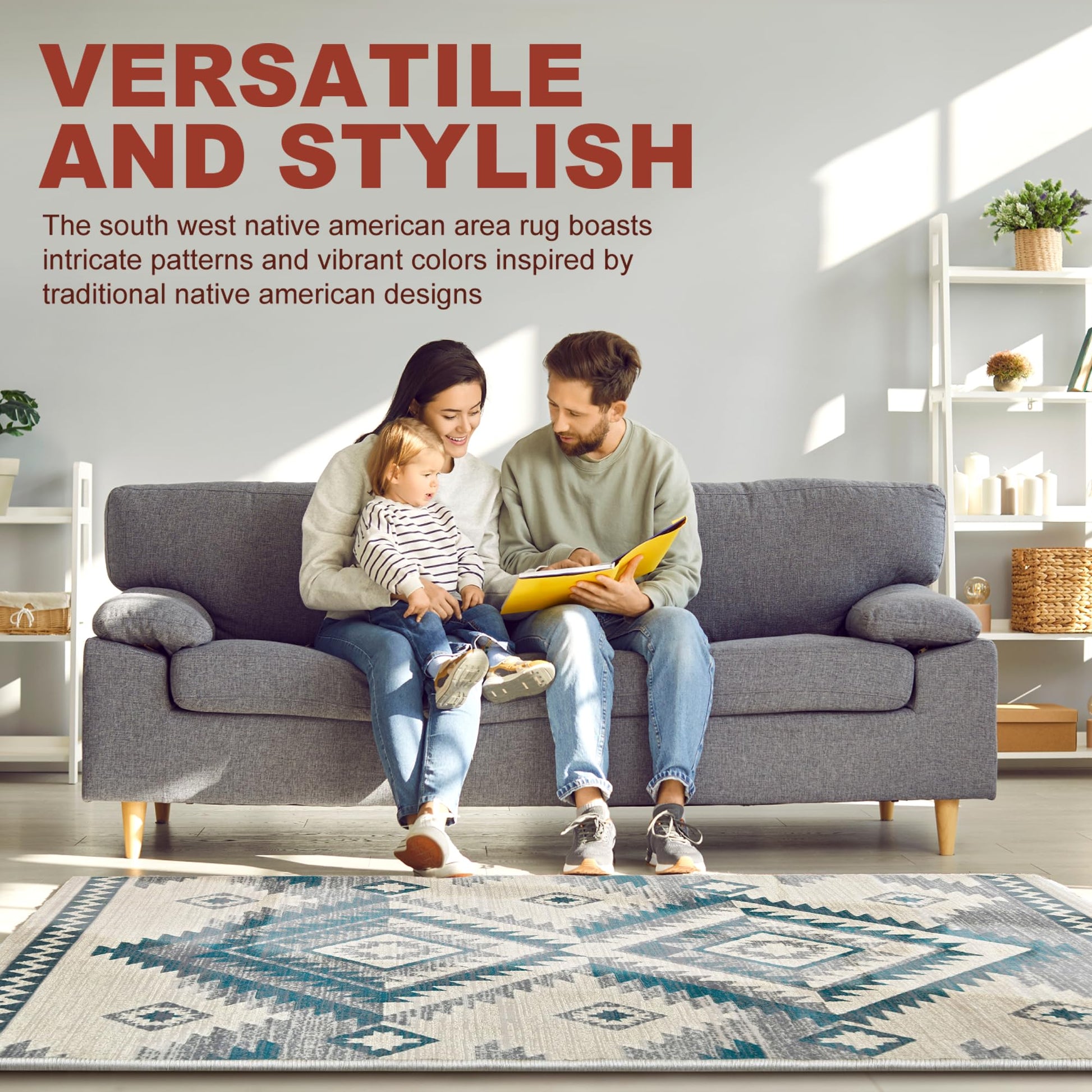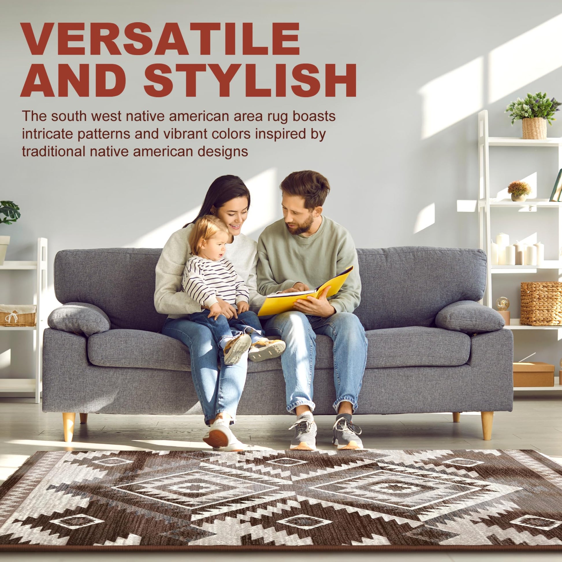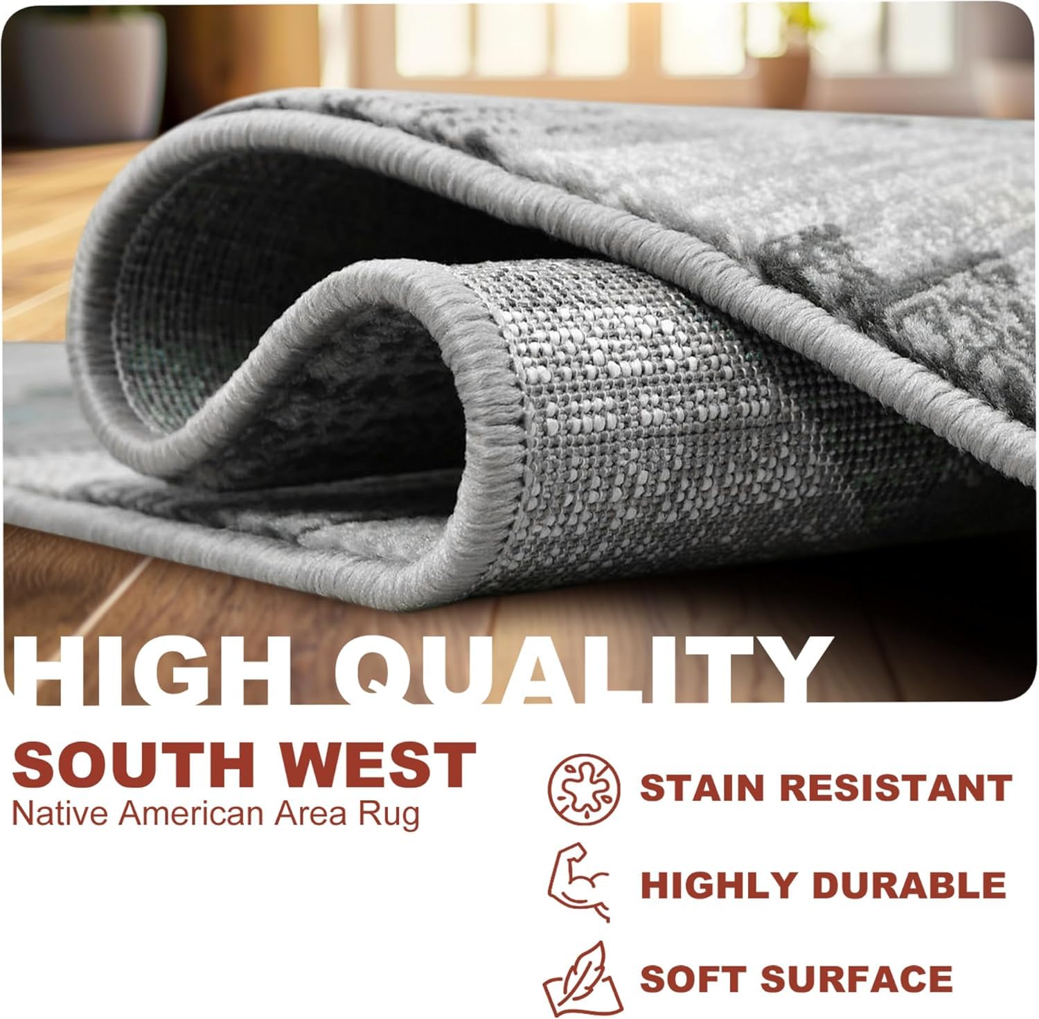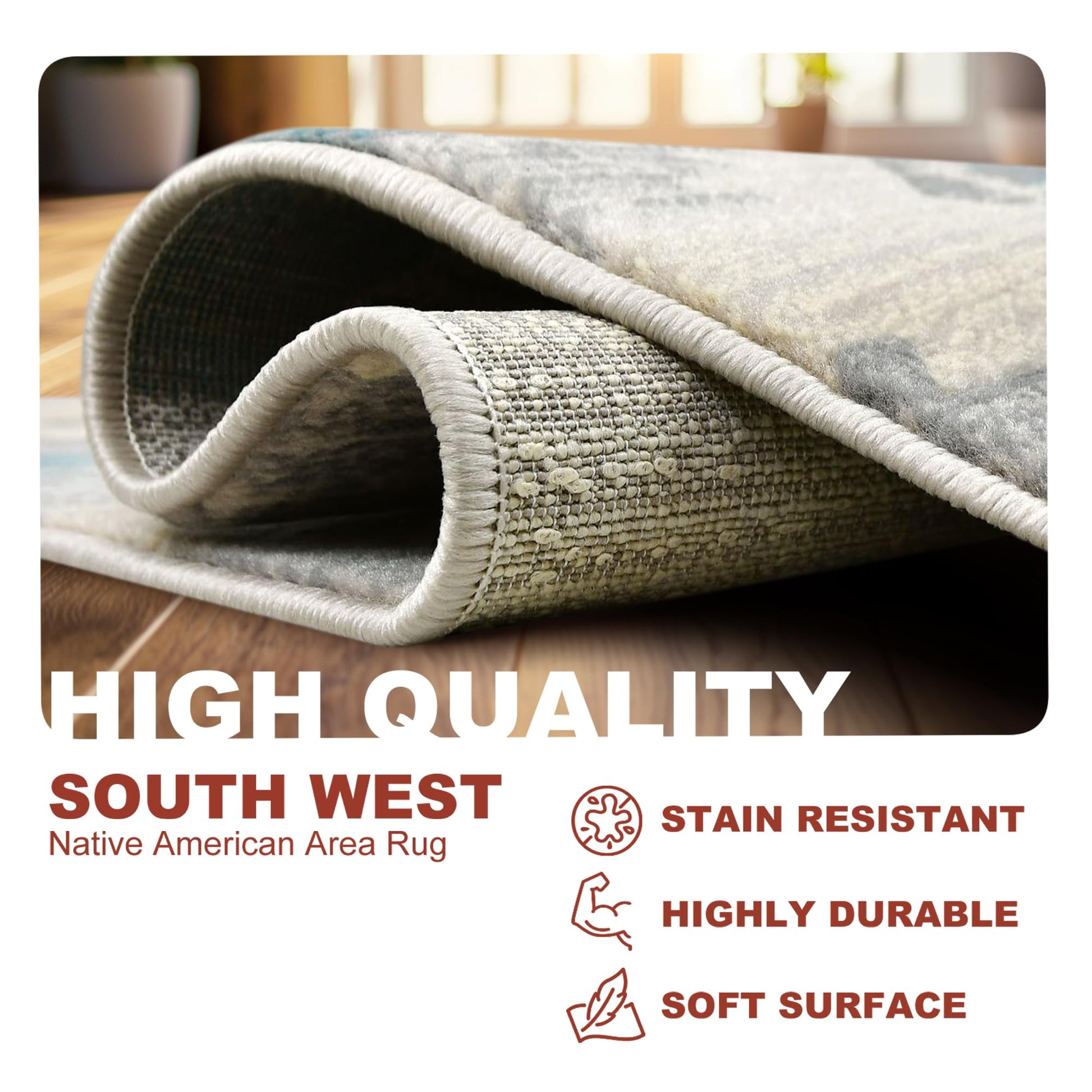 - ELEGANT NATIVE DESIGN: Elevate your home decor with this Southwest Native American Area Rug, designed to bring a touch of cultural heritage into your living space. With intricate geometric patterns and vibrant colors reflecting Native American artistry, this rug serves as a striking focal point for any room. Its traditional design blends seamlessly into both rustic and sophisticated settings.