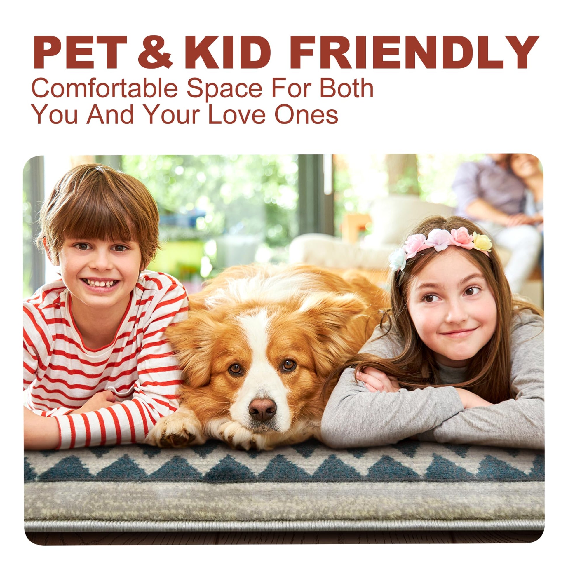 - HIGH-TRAFFIC AREAS: This washable rug is tough against spills and stains, making it an easy-to-maintain option for families. Its rugged construction ensures it holds up under heavy foot traffic, and it resists fraying or fading over time. As a stylish carpet designed for contemporary homes, it fits a large area rug for the living room, providing style and function in one.
